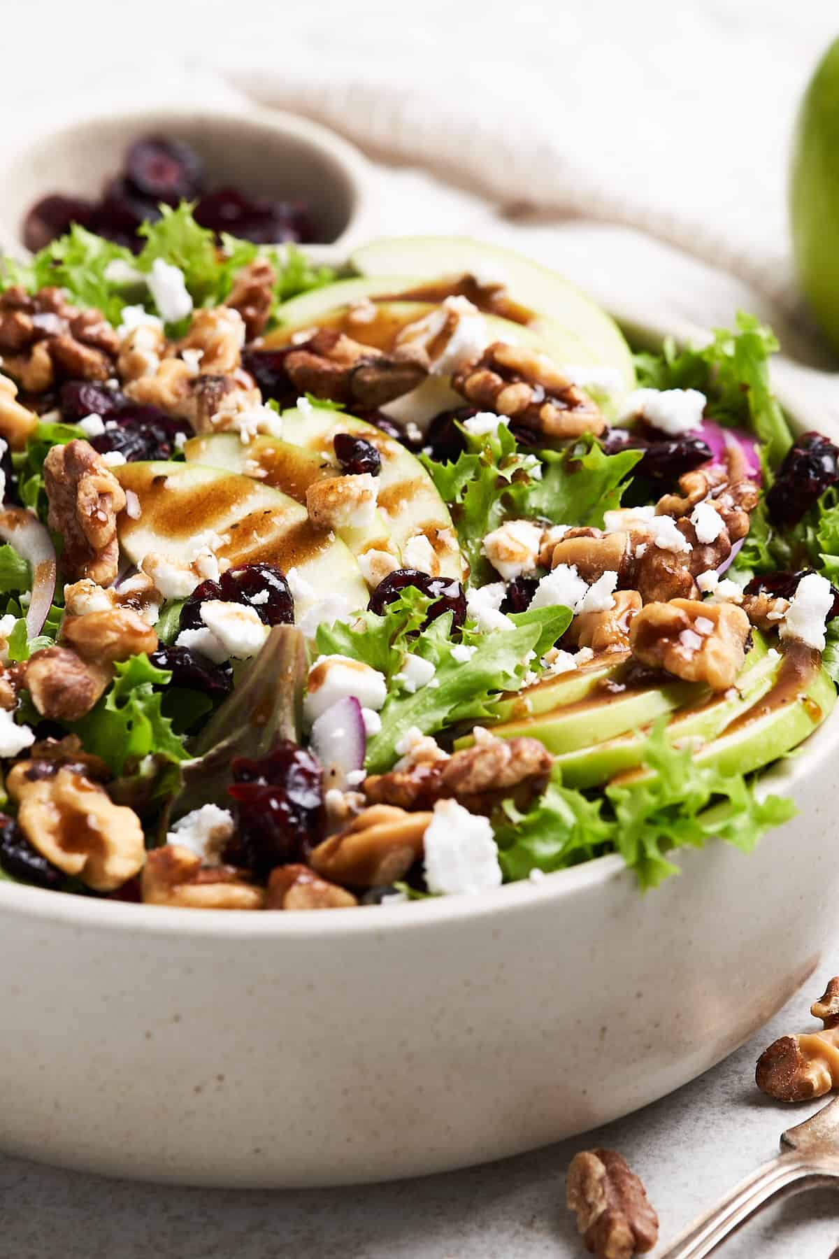 If we could only eat one salad for the rest of our days, it would be this apple and walnut salad! It features a blend of crunchy walnuts, fresh apple slices, and vibrant mixed greens, all tied together with a tangy balsamic vinaigrette.