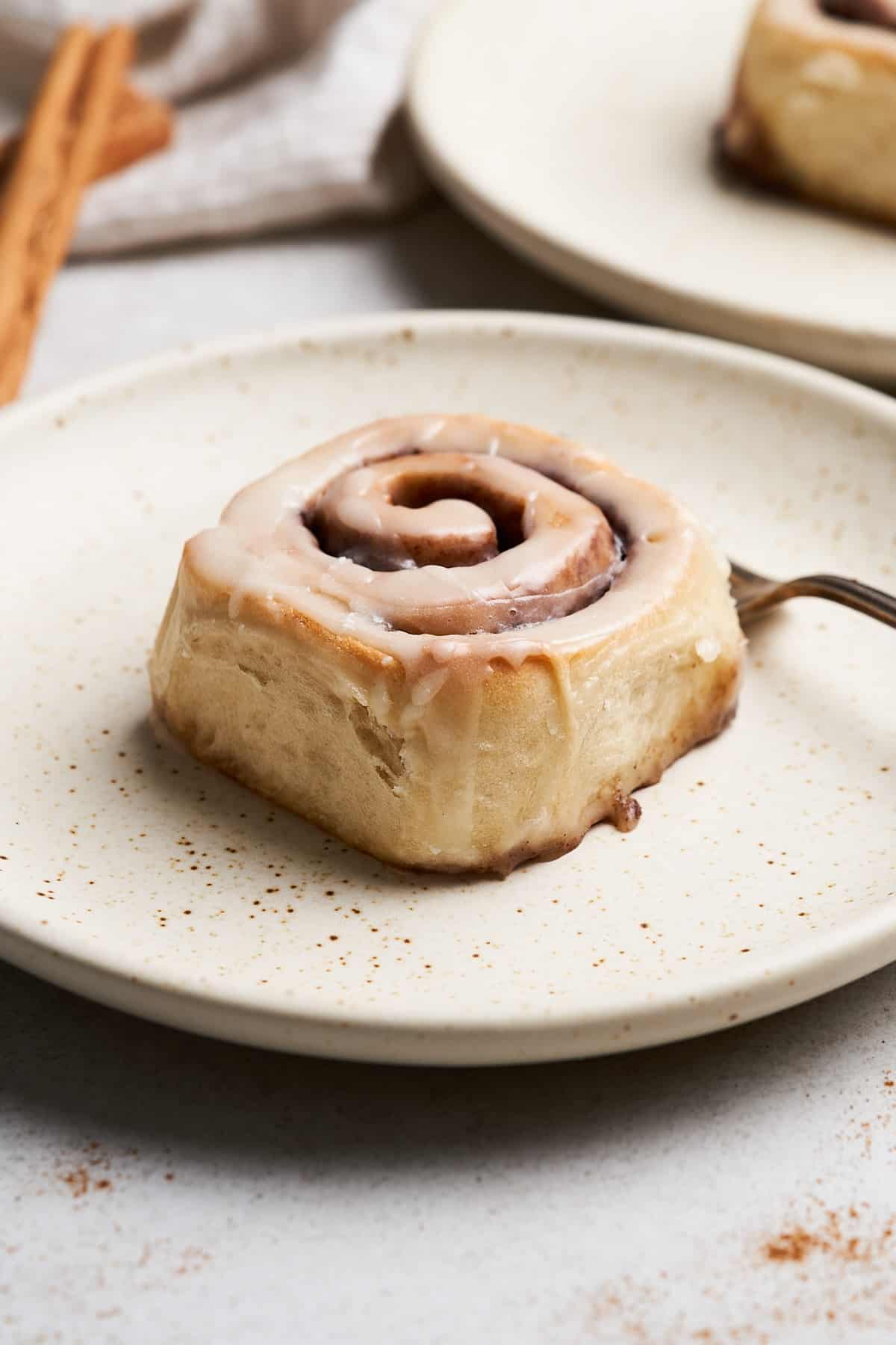 Each roll is tender, fluffy, and packed with cinnamon flavor. The rich, spiced, and sweet filling oozes out with every bite. We kept the glaze simple to prevent overpowering the rolls themselves, but feel free to use your favorite glaze or icing!