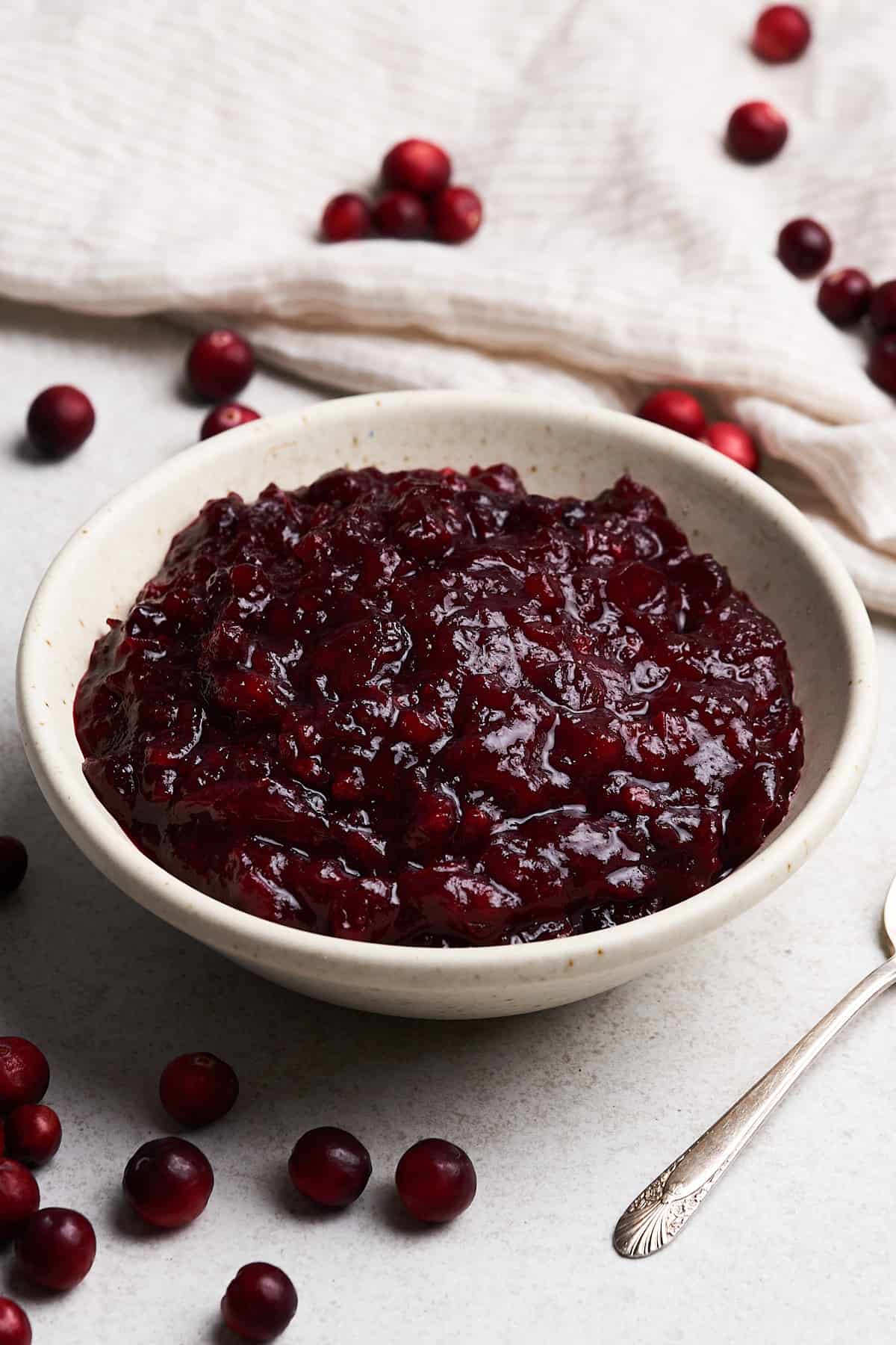 It has a thick, jammy consistency and is bursting with chunks of fresh cranberries. Plus, itโs incredibly easy to customize! Pair it with your favorite holiday dishes, incorporate it into desserts, or add it to breakfast recipes like oatmeal.