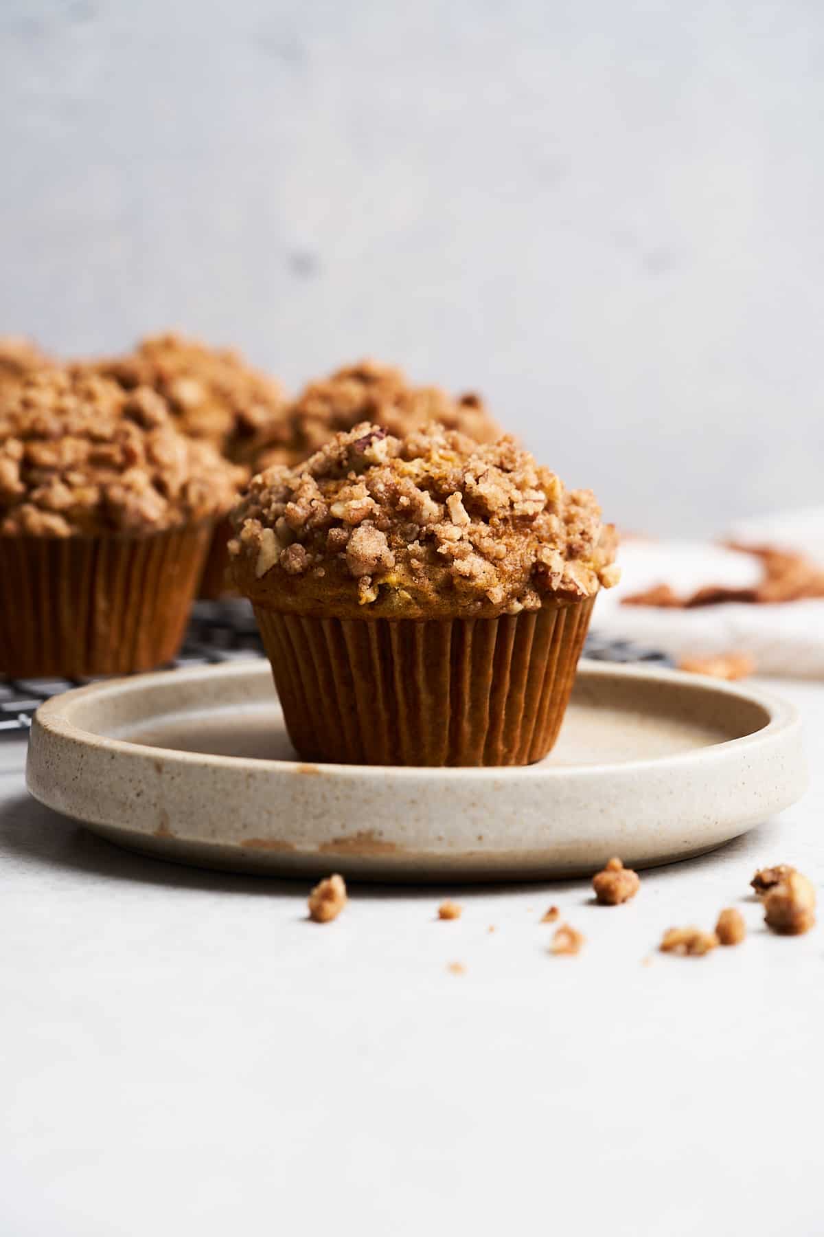 - Crunchy pecan topping: If you need another reason to make these vegan pumpkin muffins, just think about the sweet, crunchy pecan streusel on top!