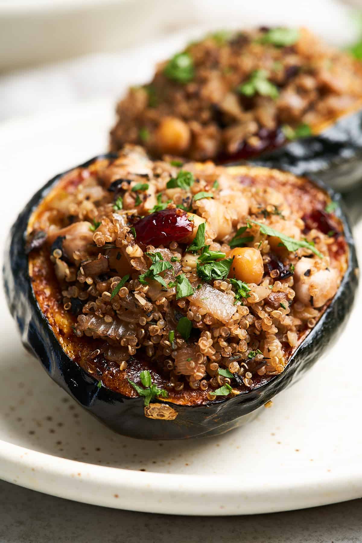 Stuffed inside is a nutritious blend of quinoa, chickpeas, walnuts, dried cranberries, and hearty veggies. And the best part? Itโs ready in 25 minutes so you can have it on the table in no time!
